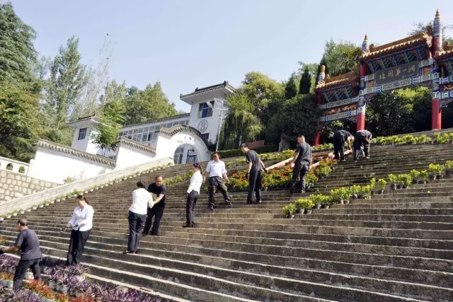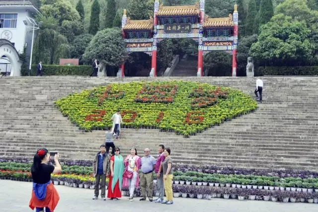 在雞冠洞中心廣場牌樓前,鮮艷的一串紅,燦爛的萬壽菊,經(jīng)過園林師傅的創(chuàng)意擺出“中國夢”的字樣,在秋日暖陽的照射下,給人帶來一場完美的視覺盛宴。