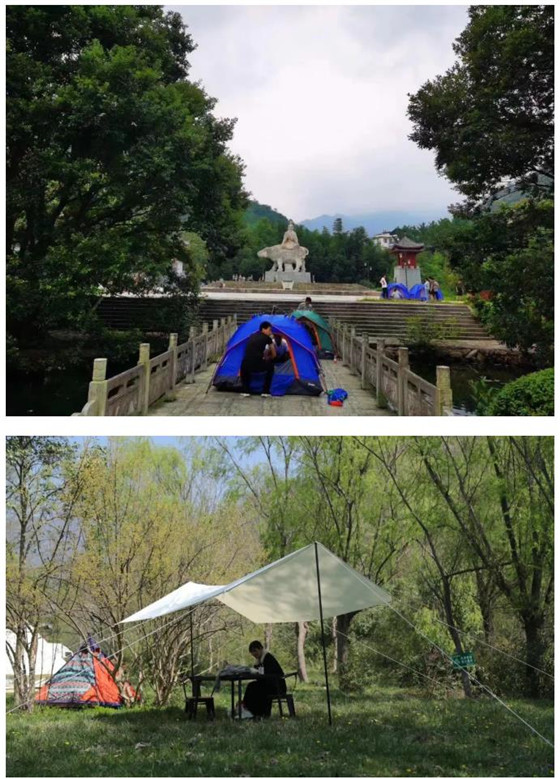 商於古道,仲景小鎮(zhèn),營在景中,景在畫中,如此良辰美景之地,月夜清風(fēng),吹起發(fā)絲幾縷亭臺樓閣,意境悠揚。搭一頂帳篷,乘著夜色,盤龍溪上清歌悠揚。