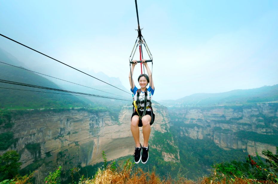 這里有500米的高空滑索,放聲尖叫!