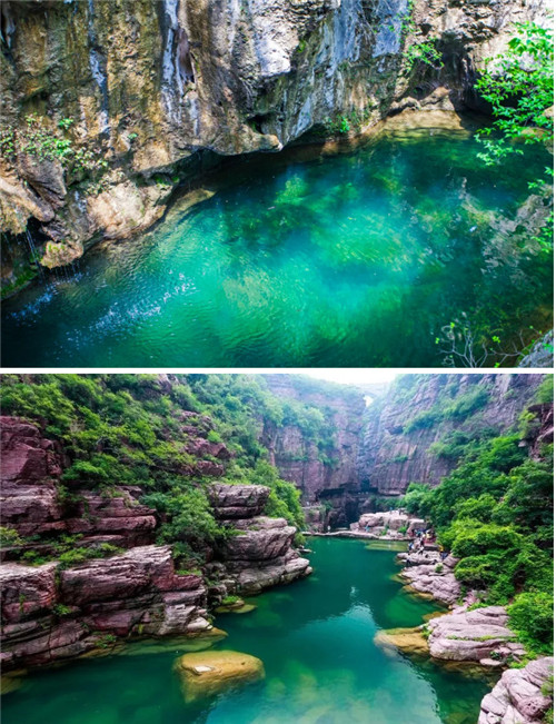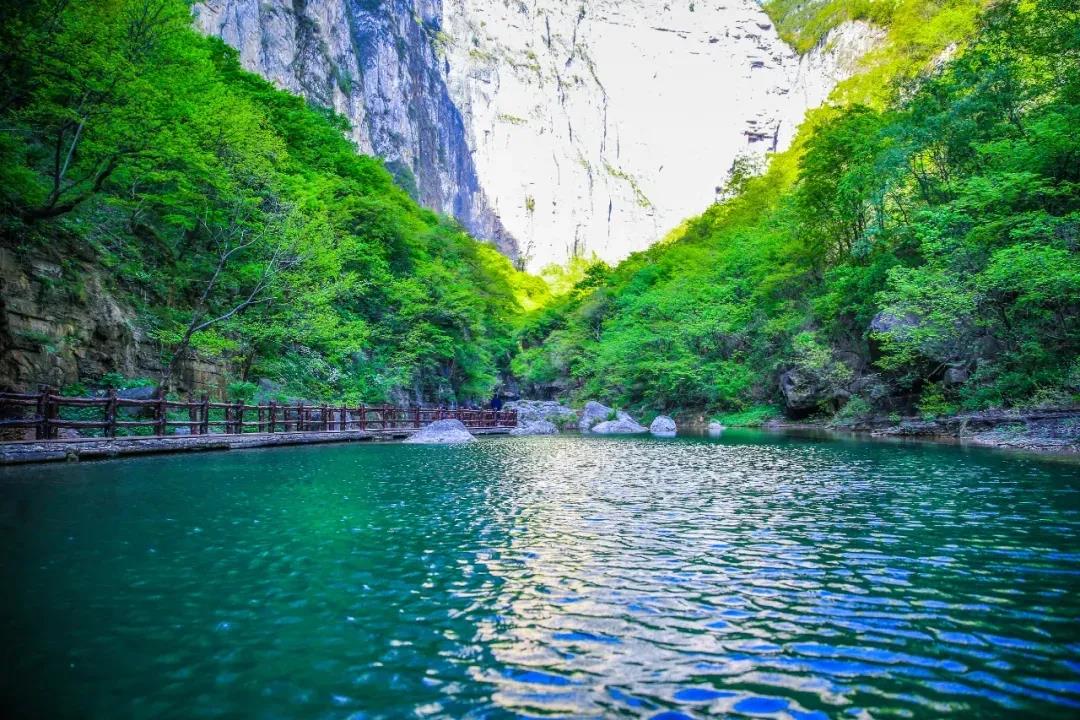 秋高氣爽時(shí),遠(yuǎn)山都變得清晰可見,水面更是清溪見底露蒼苔。行走在峽谷間,一泓碧潭水平如鏡,呈現(xiàn)出天然的青綠色,溫潤如玉,浮光掠影,似夢似幻。