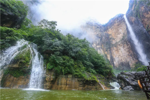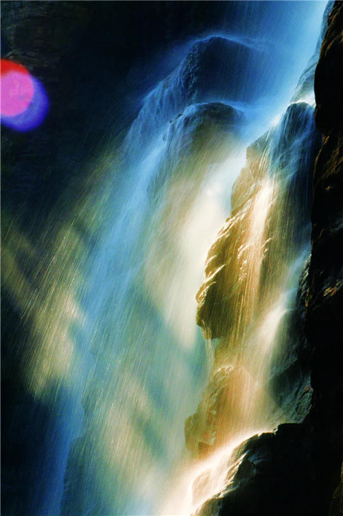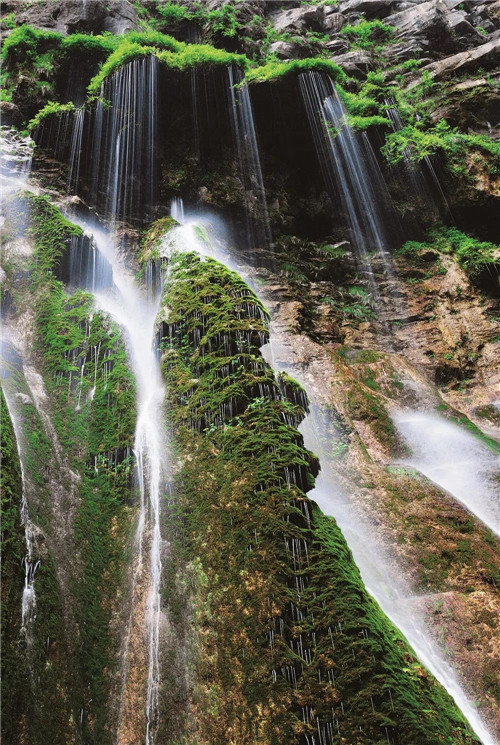 峰回路轉(zhuǎn),處處泉鳴浪涌、飛瀑直瀉,云臺(tái)天瀑、首龍瀑、丫字瀑、水簾瀑......充滿活力,自山崖間跌落,化作無數(shù)水珠飄飄灑灑,成串成行,經(jīng)陽光一照,晶瑩透亮,如珍珠灑落。
