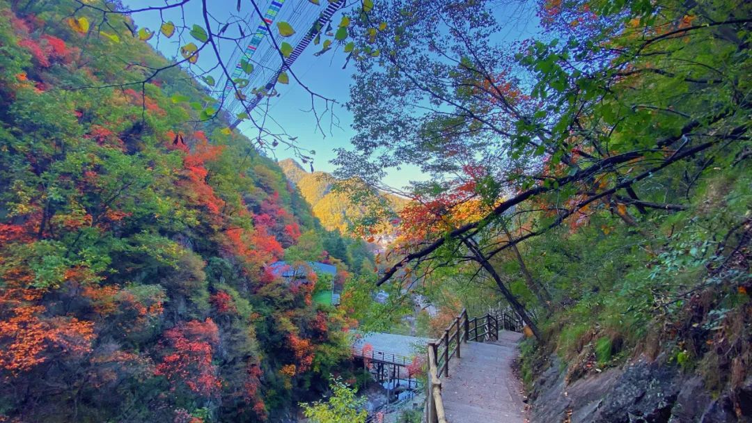 11月的老君山,到處是令人心曠神怡的斑斕,而此時山巔的陽光,少了夏日的熾烈與張揚,正心平氣和地閃耀著樹葉們捧出來的瑰麗光彩。
