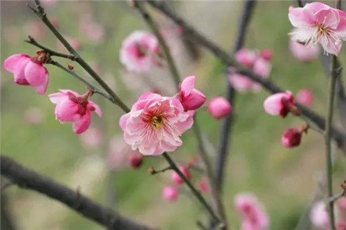 一朵一朵綴在細瘦的枝頭,從花骨朵到猶抱琵琶半遮面,再到迫不及待綻放,枝頭已然是一片熱鬧無比,眾芳搖落獨暄妍,占盡風情向小園,這也是梅花招人喜愛的原因。