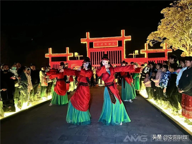 游客在殷墟景區(qū)觀看夜游表演