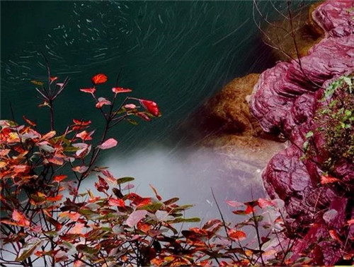 山脈連綿,紅葉覆蓋,目光所及之處盡是驚喜,碧綠秋水與紅葉迎面撞上,惹得一身斑斕!