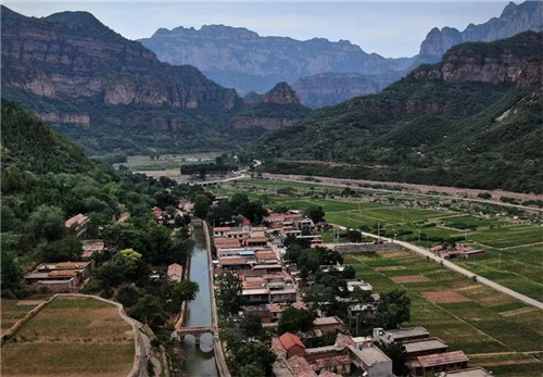紅旗渠總干渠從村莊穿過(2019年7月4日無人機(jī)拍攝)。新華社記者 李安 攝