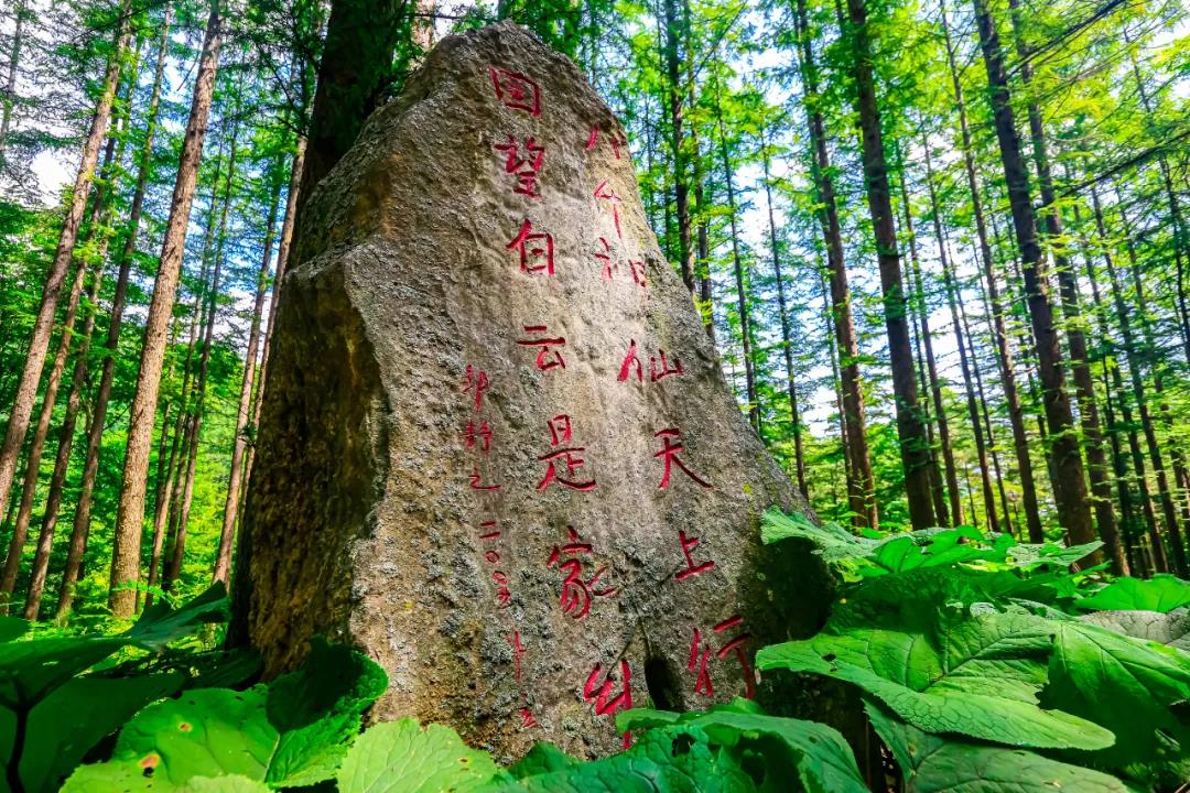 森林氧吧,是伏牛山中的小眾之地,白云山中的清幽秘境。落葉松林的林間小路走,旱蓮碧綠肥碩,文人石刻林立叢林。