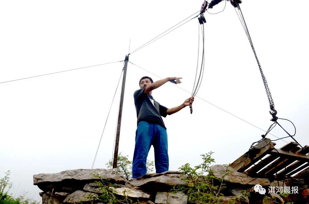 徐建光還有一項(xiàng)令他更得意的發(fā)明,就是2016年由他親手設(shè)計(jì)、制造、安裝的索道運(yùn)輸系統(tǒng),徐建光稱其為“升降運(yùn)輸機(jī)”。這套系統(tǒng)由柴油機(jī)、發(fā)電機(jī)、卷筒、鋼絲繩和鋼結(jié)構(gòu)支架等組成,操作起來靈巧又方便,至今在地谷嶺還發(fā)揮著不可替代的作用。