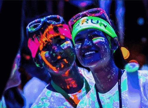 親自涂鴉的熒光T恤、熒光棒、熒光頭飾、熒光液給你黑夜里最強熒光活力。