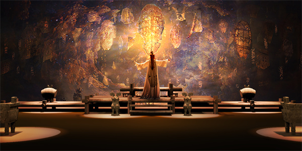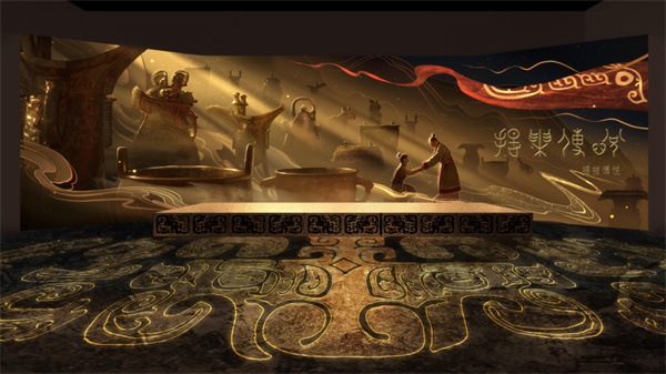 《再現(xiàn)·大邑商》巧妙融合聲、光、影像等元素,運用科技重塑歷史文化,首創(chuàng)以“裸眼沉浸體驗+XR行進式深度沉浸”產品組合方式,通過高度藝術制作的場景、聲效和視覺效果,讓游客仿佛置身真實情境。結合占卜、祭祀、青銅器鑄造等商文化典型事件,實現(xiàn)與游客的主動交互。