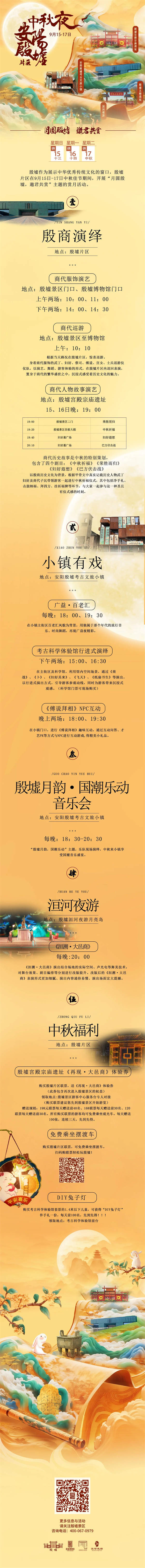 4、殷墟考古文旅小鎮(zhèn),中秋有戲,精彩不斷!考古科學體驗館值得一看!廣益·百老匯,精彩活力演出熱情無限,結合文旅小鎮(zhèn)百老匯街區(qū)風貌,用獨屬于那個年代的流行音樂、時尚舞蹈,再現(xiàn)廣益夜精彩。行進式演出《商戰(zhàn)》、《卜》、《婦好其來》、《飛天》、《紙扇書生》引導您和演員們一同游覽熱鬧的小鎮(zhèn),帶您走進安陽殷墟考古科學體驗館內,沉浸式感受神秘了不起的中國考古學!《傅說拜相》NPC將通過互動問答,在園區(qū)門口舞臺上,歡迎各位e人寶寶來挑戰(zhàn)!得精美小禮品!重磅!小鎮(zhèn)中秋今年推出“殷墟月韻,國潮樂動”主題國潮音樂會,邀請樂隊現(xiàn)場演繹“月”“團圓”“合家歡”類主題曲目,打造一臺國潮音樂盛宴,與大家點燃夜晚的熱情活力。