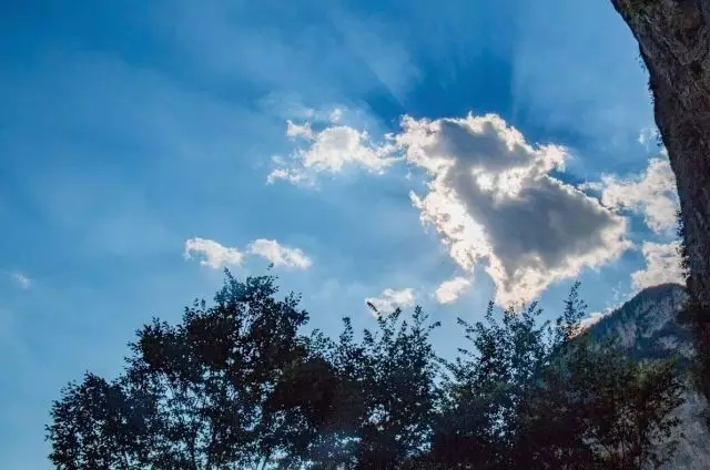 色彩斑斕的樹葉襯在絕壁之上,自然而然的富含著詩意。旁邊走過一位登山者,相視一笑,這種美妙的交流是這里獨有的美麗。