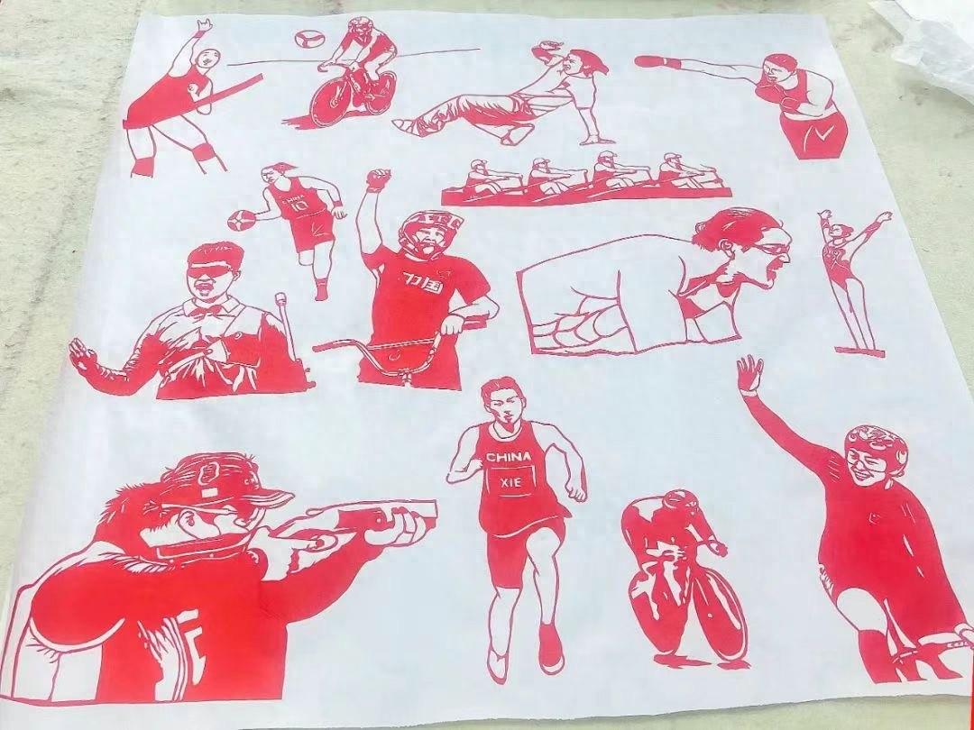 “在創(chuàng)作的時(shí)候,我們會(huì)從人物的輪廓開(kāi)始,用簡(jiǎn)潔流暢的線條勾勒其身形特征,細(xì)節(jié)上則通過(guò)剪紙的鏤空藝術(shù),呈現(xiàn)出服裝的紋理和線條,以及運(yùn)動(dòng)員們的表情和神態(tài)。”王飛介紹。