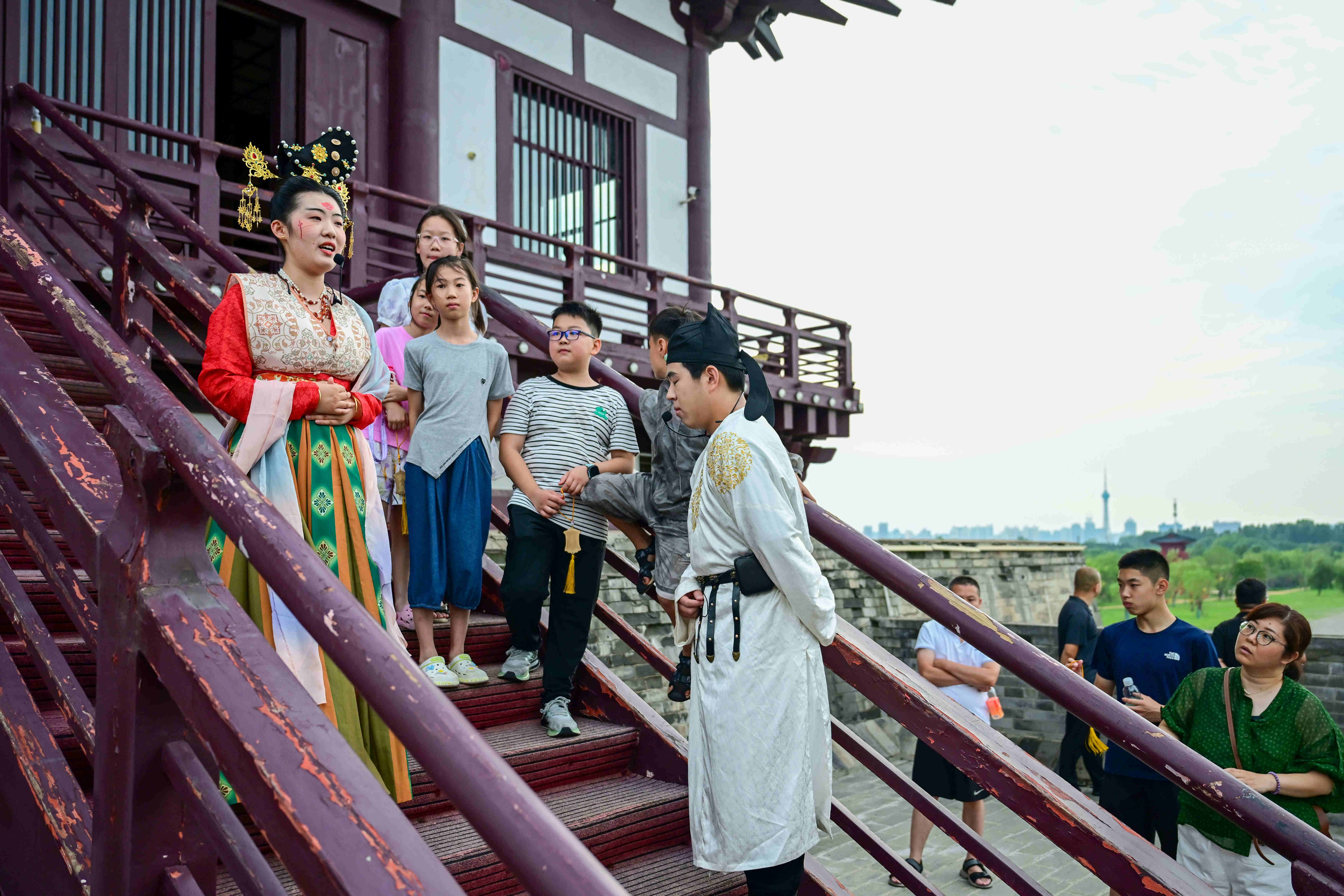 作為世界文化遺產(chǎn)絲綢之路的遺產(chǎn)點,定鼎門承載著一段盛世記憶。在講解活動中,觀眾還跟隨“太平公主”登上博物館二層城樓,在模擬展示隋唐洛陽城的沙盤前,了解隋唐洛陽城布局及里坊區(qū)內(nèi)的“名人故居”。