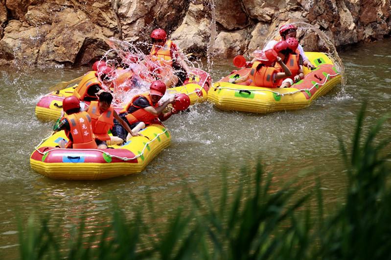 是集激流飛瀑漂、勇士驚險(xiǎn)漂、叢林探險(xiǎn)漂、原生態(tài)竹筏漂為一體的生態(tài)魅力漂流,不僅驚險(xiǎn)刺激,而且趣味頗多,眾多恐龍?jiān)馗橇钊擞T不能。