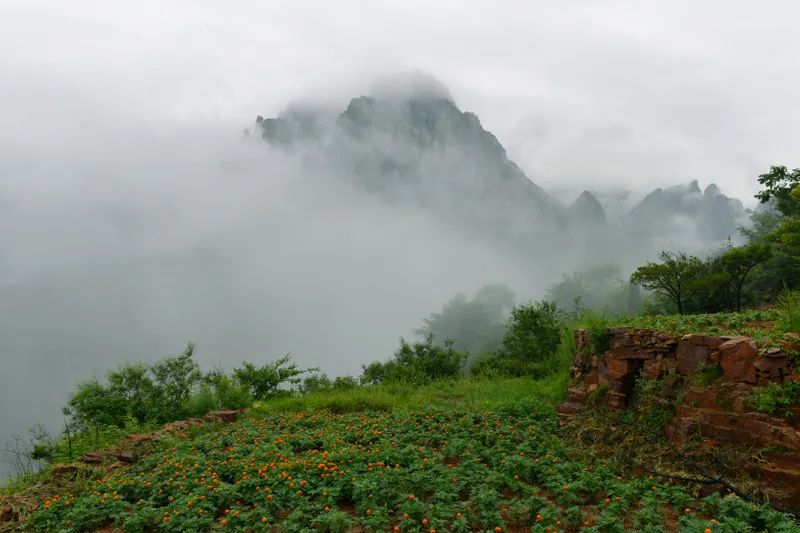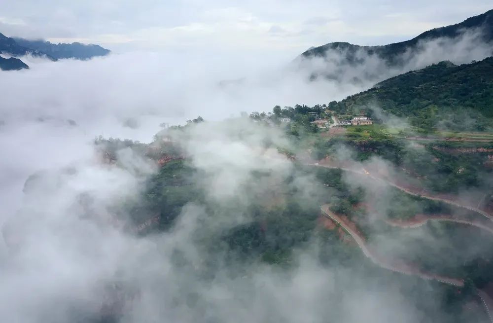 夏天的太行大峽谷,細(xì)雨綿綿,雨水,敲開了滿山新綠,霧氣和森林簡(jiǎn)直是絕配。霧氣從半山腰裊裊升起,再輕輕落下拍打在肌膚上,一股子涼絲絲的感覺(jué),伸手想要抓住卻又瞬間不見了蹤跡。