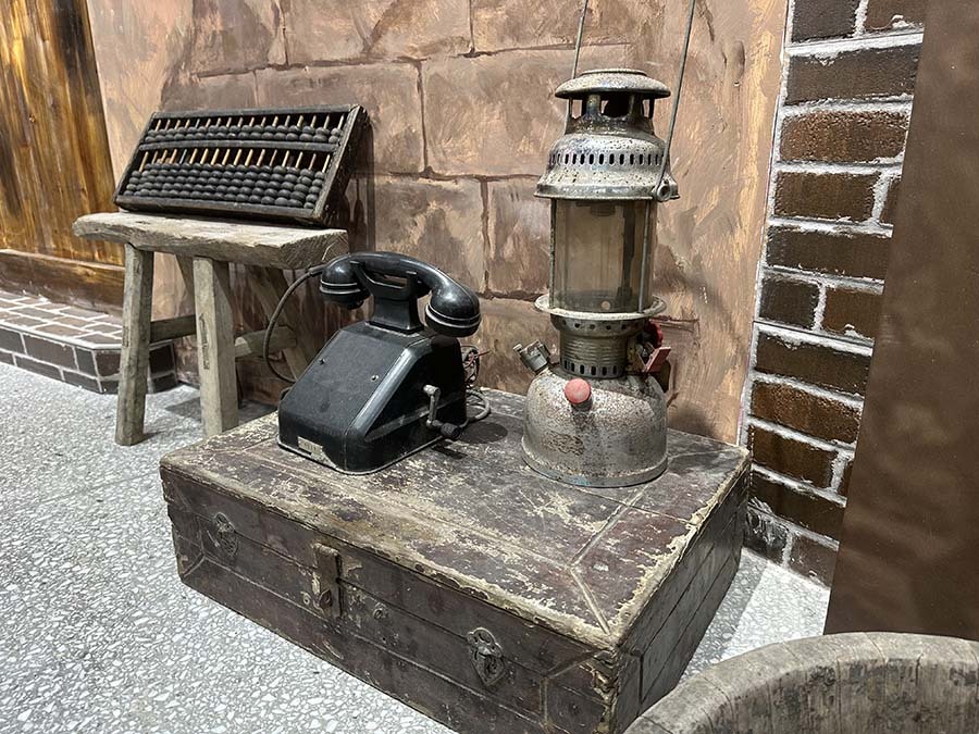 村民捐贈的老式電話機和煤油燈 魏震 攝