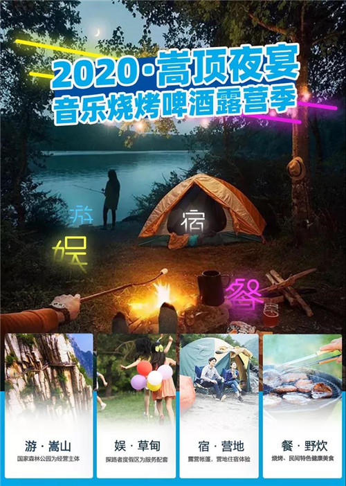 2020嵩頂音樂燒烤啤酒露營季盛大開啟!快快邀上好友,帶上寶貝到這里來,以大地為床,星空為被,帳篷為房,于傍晚賞落日,于清晨看日出,在音樂里陶醉,在游戲間開懷,在美食中品味,在草坪上追逐,在星空下舞蹈,讓大自然清除你所有的疲憊。