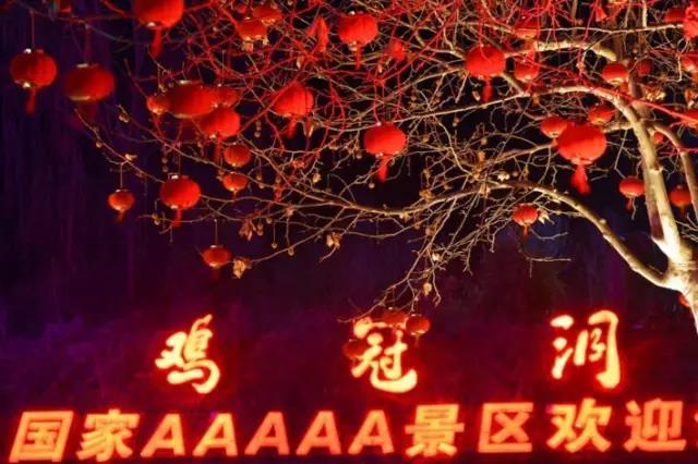 在雞冠洞景區(qū)的一號(hào)樓、二號(hào)樓、牌樓、停車場懸掛大紅燈籠上千盞,牌樓以外道路兩邊梧桐樹、中心廣場樹木懸掛小紅燈籠及流星雨燈;舫跎,美不勝收!