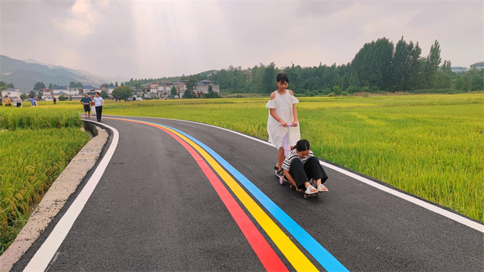 為吸引更多游客,進一步打造美麗鄉(xiāng)村,一周前,在趙村鎮(zhèn)黨委、政府幫助下,此前通往“網(wǎng)紅稻田”的水泥村道如今全部鋪成了柏油“彩虹路”。