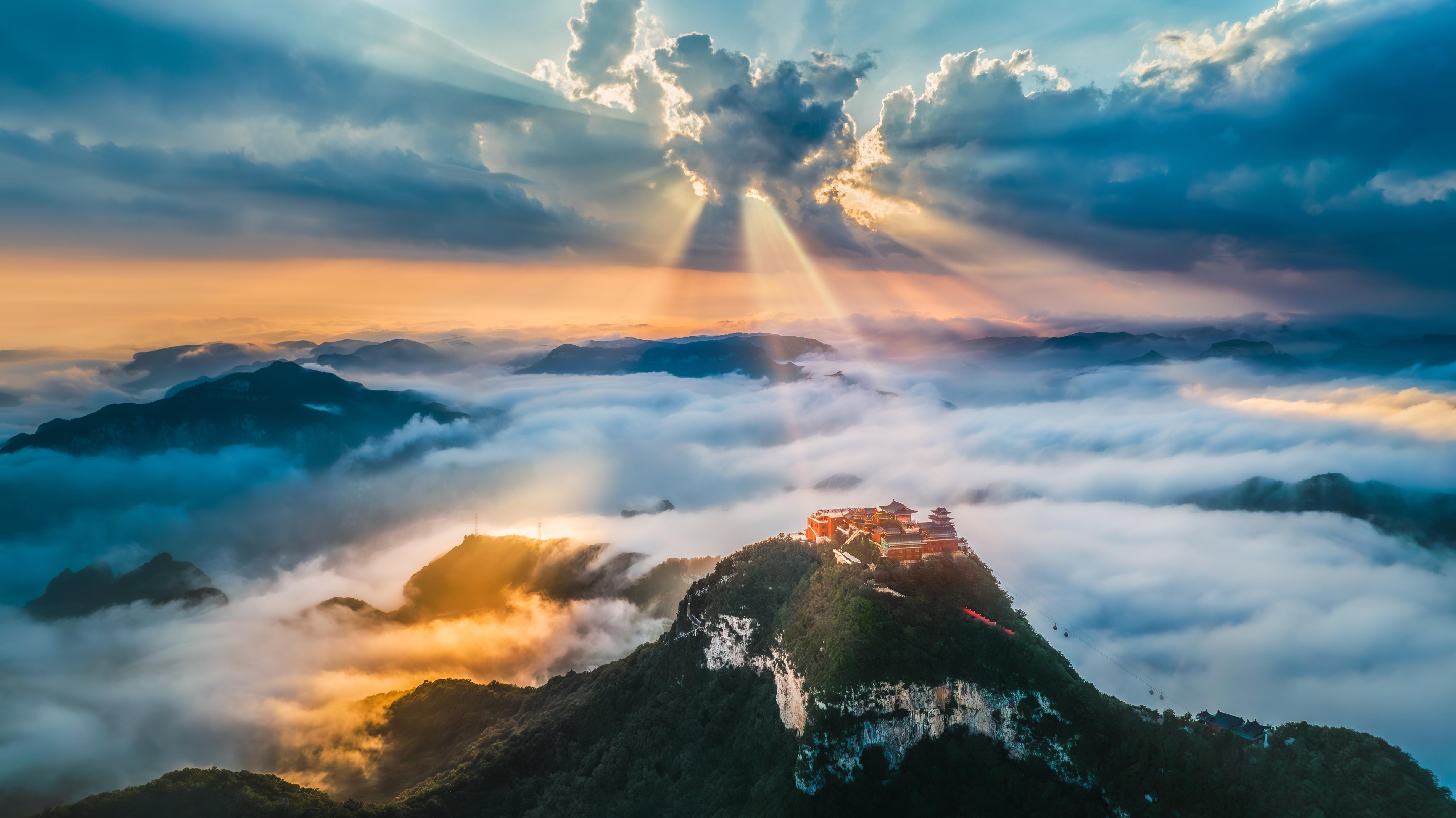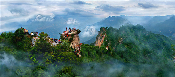 國家5A級旅游景區(qū)云臺山主峰茱萸峰云海翻涌,如夢似幻