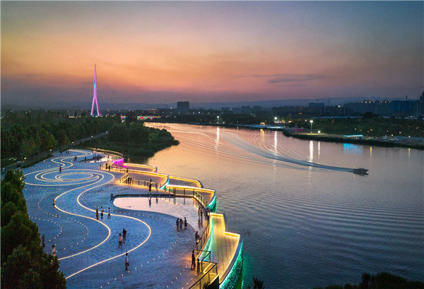 國家4A級旅游景區(qū)大沙河生態(tài)公園夜景
