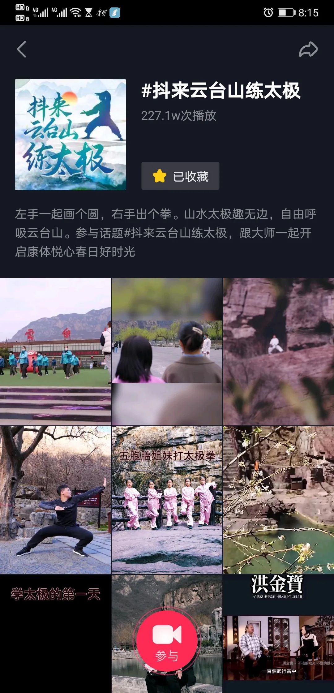 強身健體健康出行,拍攝抖音視頻,參與話題#抖來云臺山練太極#讓我們一起橫掃病毒!