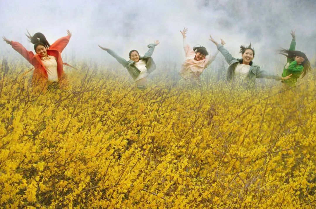 漫山遍野的桃花、杏花、連翹花競相開放、爭奇斗艷,呈現(xiàn)出“百花開放春滿園”的盛景。粉色的桃花開滿山坡,分外妖嬈;淡雅的杏花,潔白如霜;還有金燦燦的連翹花鮮艷奪目,一眼望去,滿山盡披黃金甲!