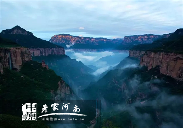 回龍?zhí)旖缟轿挥谳x縣市上八里西北部的太行山深處,一落千丈的紅巖絕壁,綿延無際可謂鬼斧神工。青山、碧水、白云、藍(lán)天與古樹、林蔭、山風(fēng)、民宅相映成趣,組成獨(dú)領(lǐng)太行風(fēng)騷的奇特佳境。
