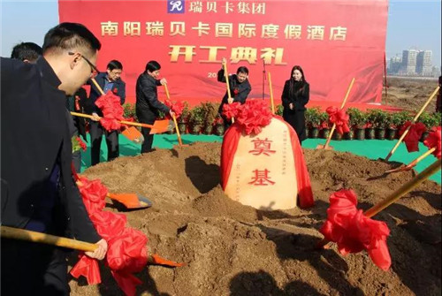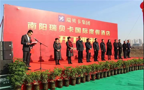 12月18日,南陽市鎮(zhèn)平縣城新區(qū)玉雕大師園東側(cè)區(qū)域一處項目工地上人頭贊動、熱鬧非凡,由瑞貝卡集團公司投資注冊成立的南陽瑞貝卡文化旅游發(fā)展有限責任公司首個建設(shè)項目--南陽瑞貝卡國際度假酒店開工典禮在這里隆重舉行。南陽市旅游和僑務(wù)局局長黨長雙、鎮(zhèn)平縣委書記李顯慶、鎮(zhèn)平縣委副書記趙浩、縣政府常務(wù)副縣長楊振中、縣委常委鄭文明、宣傳部長周清玉、副縣長屈云霞、薛江峰,鎮(zhèn)平縣人大副主任李巧菊、瑞貝卡集團總裁鄭桂花、副總裁武俊安、集團行政人力資源中心總經(jīng)理李煥貞、南陽瑞貝卡文化旅游發(fā)展有限責任公司董事長蘭海波、總經(jīng)理董景濤、洛陽白云山文化旅游發(fā)展有限責任公司和南陽瑞貝卡置業(yè)公司等數(shù)百人共同見證開工盛事。蘭海波和趙浩分別致辭,鄭桂花宣布開工令。
