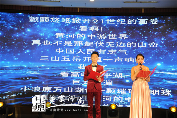 推介會(huì)以壯美大氣的《黃河小浪底》等宣傳片進(jìn)行預(yù)熱,使參會(huì)嘉賓一進(jìn)場(chǎng)就如同來(lái)到風(fēng)景如畫的小浪底之上。伴著豪放大氣、慷慨激昂的《小浪底頌》朗誦表演拉開(kāi)了推介會(huì)的序幕。