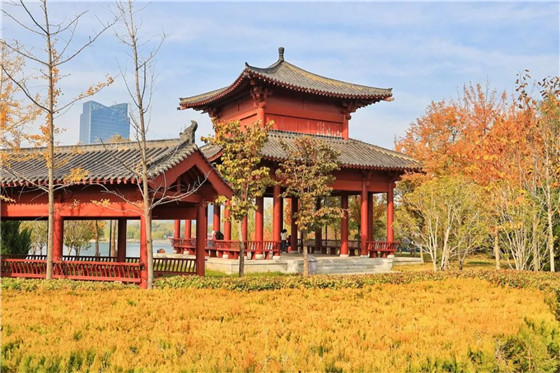 初冬時節(jié),古城河南開封像是打翻了的調(diào)色盤,在黃河黑崗口調(diào)蓄水庫兩岸,一眼望去,色彩斑斕、美景如畫。