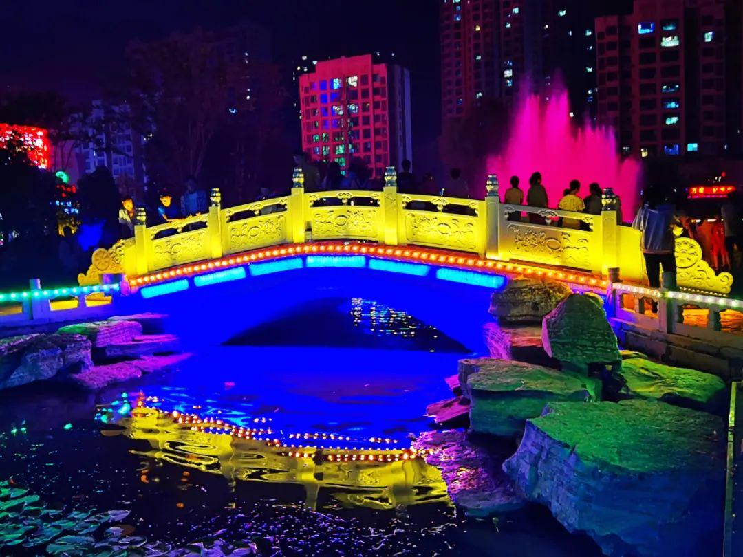 泌陽的白天繁華喧鬧,盤古園霓虹閃爍的夜景讓人流連忘返......