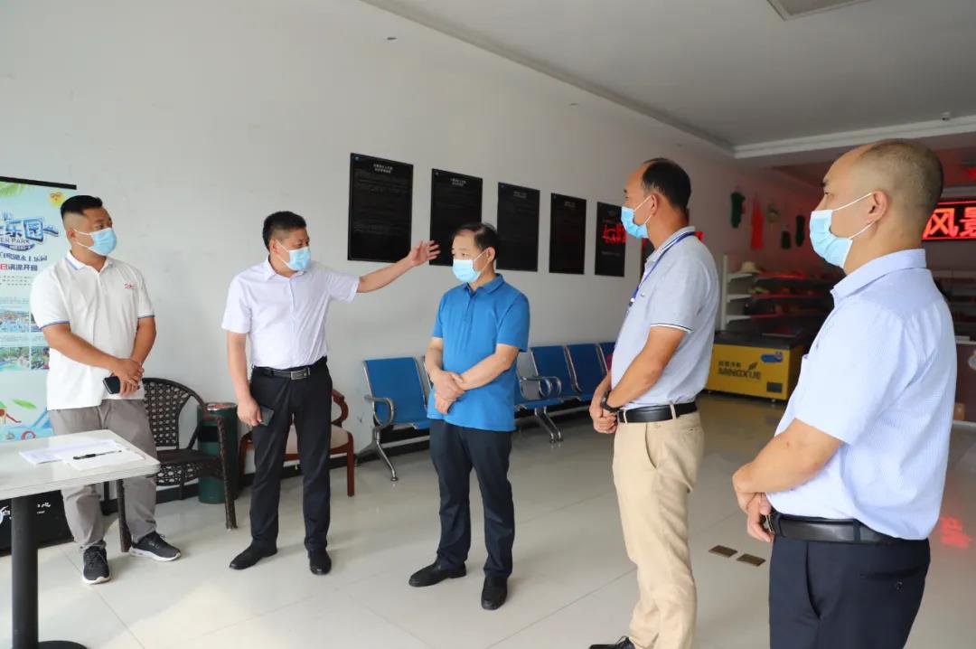 檢查督導(dǎo)組一行先后來到大別山干部學(xué)院固始教學(xué)基地和白鷺湖水上樂園,萬人助萬企首席服務(wù)官、縣文廣旅局黨組書記、局長(zhǎng)?子,縣文廣旅局黨組副書記、副局長(zhǎng)劉方森帶頭測(cè)體溫,掃碼登記,認(rèn)真檢查了測(cè)溫、掃碼、信息登記、留觀室設(shè)置、防護(hù)物資儲(chǔ)備和清潔消毒等相關(guān)防控工作的落實(shí)情況,并聽取了相關(guān)負(fù)責(zé)人的工作匯報(bào)。