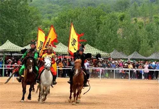 烈馬揚塵,卷起千層沙,風(fēng)隨馬奔,心隨馬動,古代的戰(zhàn)爭場面,戰(zhàn)馬奔騰,戰(zhàn)歌嘶吼,刀光劍影之間,精彩紛呈的馬戰(zhàn)躍入眼簾……… 這些古代戰(zhàn)爭的畫面不再僅僅存在于我們的小說和電視劇中!景區(qū)與驍騰馬術(shù)俱樂部強(qiáng)強(qiáng)聯(lián)合,投資數(shù)十萬打造聲光樂具享的視聽盛宴——大戰(zhàn)虎牢關(guān)!