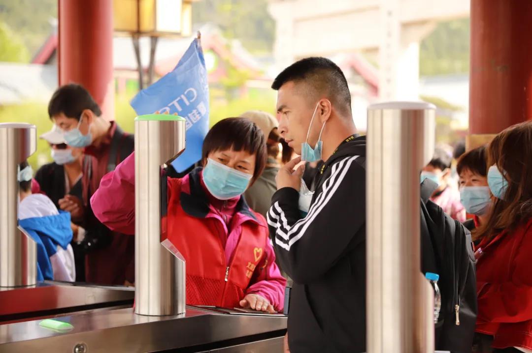 嵩山少林景區(qū)嚴(yán)格貫徹落實(shí)“限量、預(yù)約、錯(cuò)峰”要求,加大客流疏導(dǎo)力度,避免游客瞬時(shí)聚集,利用廣播、電子顯示屏以及網(wǎng)絡(luò)平臺微博實(shí)時(shí)對景區(qū)內(nèi)客流量和景區(qū)內(nèi)可能擁擠的區(qū)域滾動播發(fā)信息,提示游客做好個(gè)人防護(hù),排隊(duì)進(jìn)入景區(qū)時(shí)保持1米距離,有序入園。
