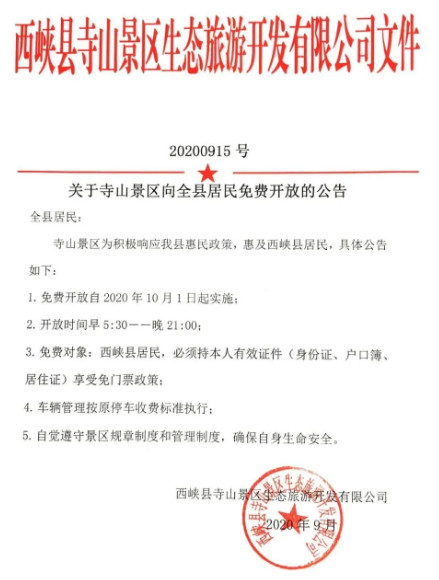 重磅消息來(lái)了!4A級(jí)景區(qū)寺山國(guó)家森林公園,即將于2020年10月1日向西峽市民免費(fèi)開(kāi)放!