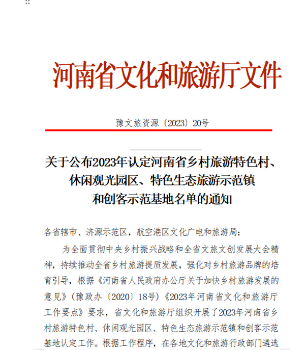 近日,河南省文化和旅游廳公布2023年認(rèn)定河南省鄉(xiāng)村旅游特色村、休閑觀光園區(qū)、特色生態(tài)旅游示范鎮(zhèn)和創(chuàng)客示范基地名單,洛陽市新安縣石井鎮(zhèn)龍?zhí)稖洗、洛陽市新安縣磁澗鎮(zhèn)李子溝村成功入選河南省鄉(xiāng)村旅游特色村,洛陽市新安縣正村鎮(zhèn)成功入選河南省特色生態(tài)旅游示范鎮(zhèn),洛陽市新安縣石井鎮(zhèn)洛陽華洋生態(tài)科技園、洛陽市新安縣磁澗鎮(zhèn)天興生態(tài)園成功入選河南省休閑觀光園區(qū),快跟著小編一起來看看吧~