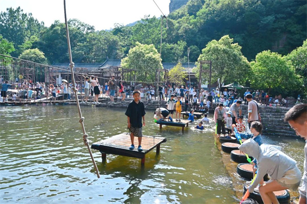 龍?zhí)稖洗宕罅Πl(fā)展多元化休閑觀光旅游項(xiàng)目,隨著鄉(xiāng)村觀光旅游發(fā)展,水上樂園、拓展訓(xùn)練基地、仿古木棧道、地質(zhì)博物館研學(xué)基地等旅游觀光設(shè)施的建設(shè),年接待游客量近100萬人次,加上得天獨(dú)厚的山水資源優(yōu)勢和區(qū)位交通優(yōu)勢,村民可以對游客出售農(nóng)家土雞蛋、黑土豬肉、土蜂蜜、核桃、山藥葛根、各種時令山野菜等土特產(chǎn),增加旅游附帶產(chǎn)業(yè)產(chǎn)品經(jīng)濟(jì)效益。同時利用現(xiàn)有近50家風(fēng)味小吃農(nóng)家飯、黃河魚蝦、精品酒店等特色餐飲、住宿,發(fā)展餐飲休閑娛樂項(xiàng)目,助推旅游業(yè)的發(fā)展。