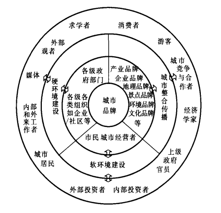 圖2基于內(nèi)部品牌和利益相關者的城市品牌關系框架