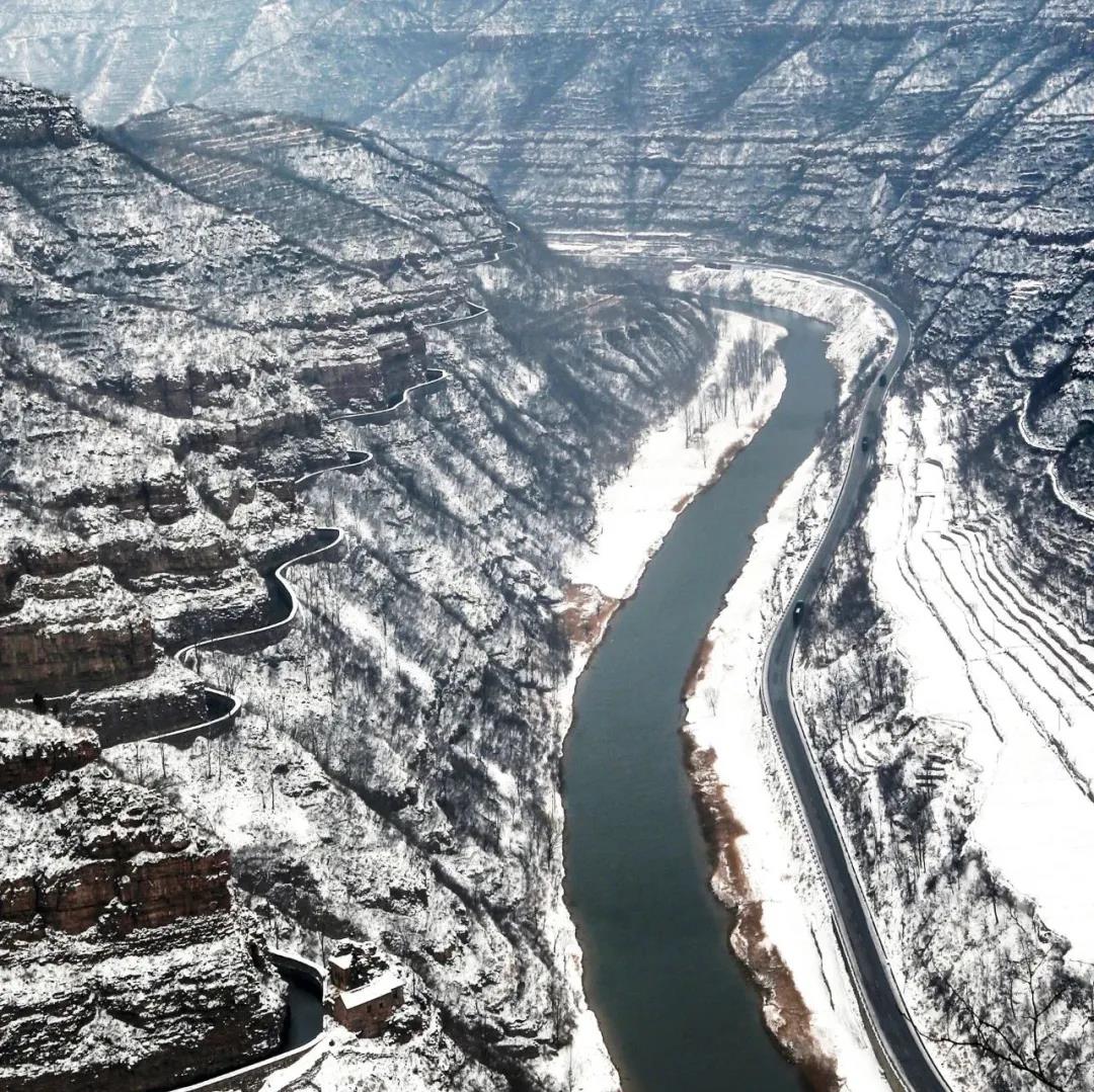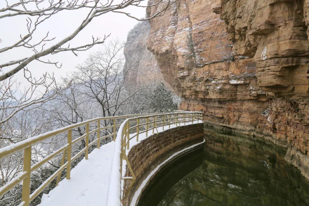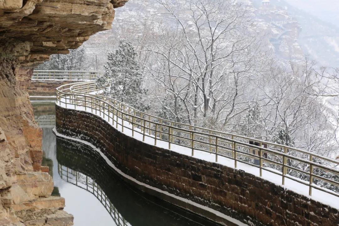 山與雪的相擁,描繪出紅旗渠畔綿延千里的水墨畫卷,美不勝收!