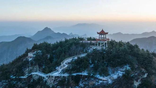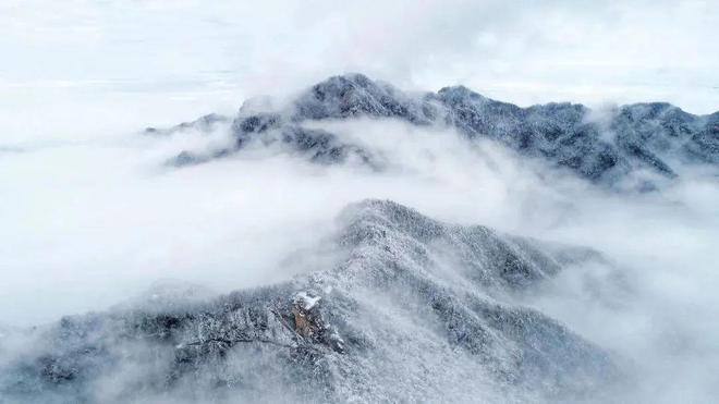 山頂霧氣緩緩升騰 若隱若現(xiàn) 皚皚白雪點綴在蒼茫的群山間 猶如一幅水墨丹青