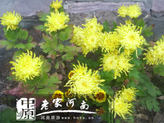 初冬的天界山,在海拔1300多米的懸崖絕壁旁,黃燦燦的秋菊還在怒放。
