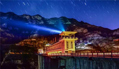 趁著夜色,遠(yuǎn)眺青天河大壩,可以欣賞到漫天繁星映照下的大壩美景。