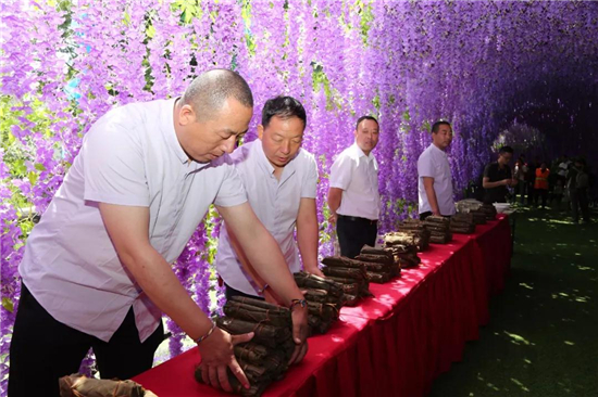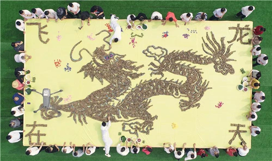 在老君山平洋廣場,工作人員現(xiàn)場包槲包,并用槲包擺成飛龍圖樣,以紀念端午節(jié)的到來。據(jù)傳,端午節(jié)源自天象崇拜,由上古時代祭龍演變而來。這一天,龍星飛升至正南中天,也就是我們熟知的“飛龍在天”。