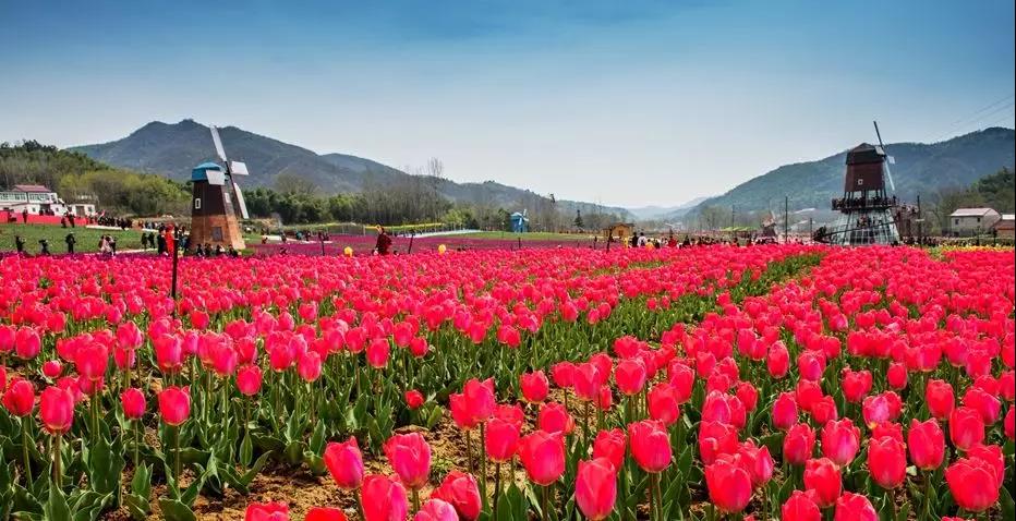 滿園的郁金香,如同一束束小小的火苗,油光碧綠的葉片中間托出千百朵濃郁的花朵,仿佛九天仙女把撕碎的彩鍛灑向人間。