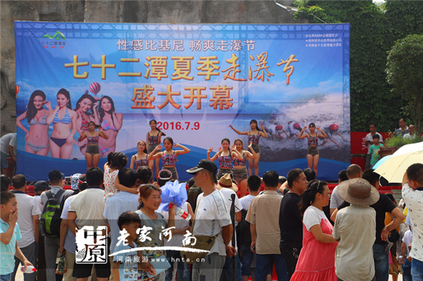 性感火辣的比基尼走秀和歌舞表演后,比基尼模特們移步景區(qū)內(nèi)部。游客紛紛跟隨比基尼美女向景區(qū)內(nèi)部涌去,并爭(zhēng)相與美女合影留念。為了滿(mǎn)足游客們近距離接觸美女們的愿望,景區(qū)特別安排比基尼模特為大家表演水上走瀑,精彩的水上走瀑秀給72潭的美景增添了一抹亮麗的色彩!