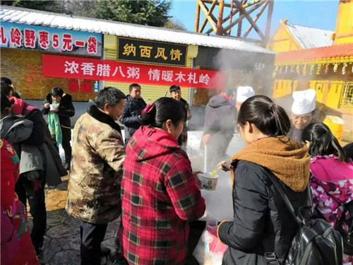 1月13日,恰逢中國(guó)傳統(tǒng)節(jié)日“臘八”,為了讓游客在欣賞美景的同時(shí)能感受到節(jié)日的氛圍和寒冬的溫暖,13日當(dāng)天景區(qū)特意準(zhǔn)備免費(fèi)臘八粥1500余份供游客享用。游客們紛紛表示“沒想到這天寒地凍的季節(jié),還有熱騰騰的臘八粥可以喝,真是太好了,為木札嶺點(diǎn)贊!”