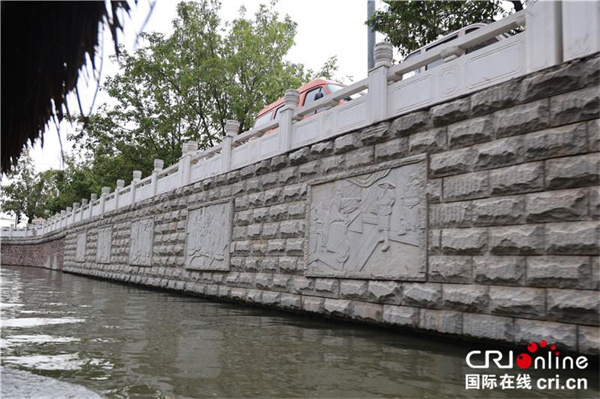 在許昌,游客還可以乘坐極富文化底蘊(yùn)的“水上公交”,行駛在護(hù)城河上,緩緩駛過河畔茂密的荷葉叢,欣賞沿途眾多三國(guó)文化元素,如講述三國(guó)故事的浮雕、繪著《華彩建安》《金戈曹魏》的卷軸、刻有《觀滄!贰洱旊m壽》詩(shī)詞的大型文化竹簡(jiǎn)景墻等。