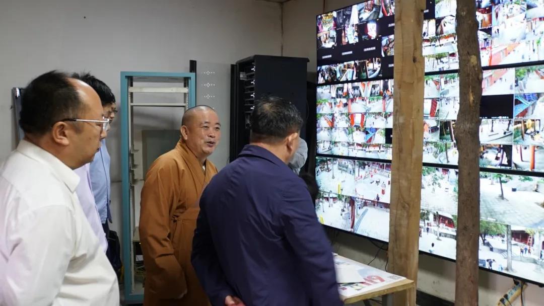 在永信方丈的陪同下,調(diào)研組一行還參觀了少林寺監(jiān)控室及微型消防站,查看了消防檢查、日常巡邏登記表,對少林寺安全防范工作及應(yīng)急預(yù)案給予高度評價(jià)。